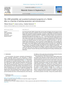 « The LPBF printability and as-printed mechanical properties of a Ti6246 alloy as a function of printing parameters and microstructure ».