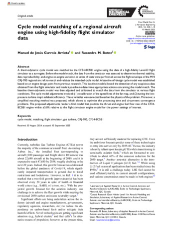 « Cycle model matching of a regional aircraft engine using high-fidelity flight simulator data ».