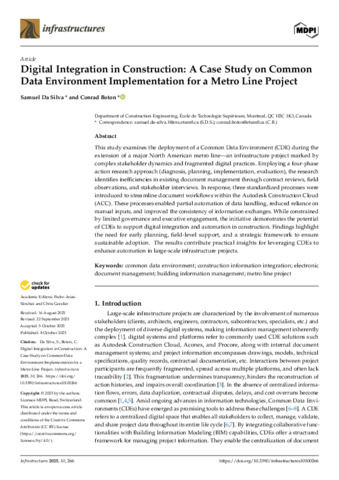 « Digital integration in construction: A case study on common data environment implementation for a metro line project ».