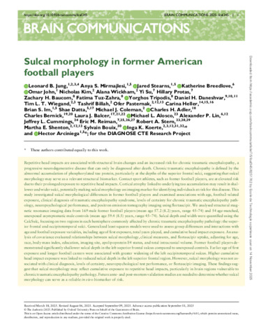 Jung, Leonard B., Mirmajlesi, Anya S., Stearns, Jared, Breedlove, Katherine, John, Omar, Kim, Nicholas, Wickham, Alana, Su, Yi, Protas, Hillary, Baucom, Zachary H., Tuz-Zahra, Fatima, Tripodis, Yorghos, Daneshvar, Daniel H., Wiegand, Tim L. T., Billah, Tashrif, Pasternak, Ofer, Heller, Carina, Im, Brian S., Datta, Shae, Coleman, Michael J., Adler, Charles H., Bernick, Charles, Balcer, Laura J., Alosco, Michael L., Lin, Alexander P., Cummings, Jeffrey L., Reiman, Eric M., Stern, Robert A., Shenton, Martha E., Bouix, Sylvain, Koerte, Inga K. et Arciniega, Hector.