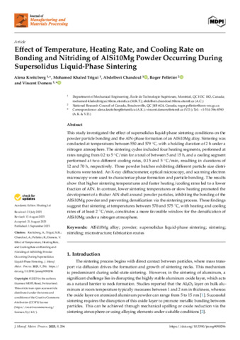 « Effect of temperature, heating rate, and cooling rate on bonding and nitriding of AlSi10Mg powder occurring during supersolidus liquid-phase sintering ».