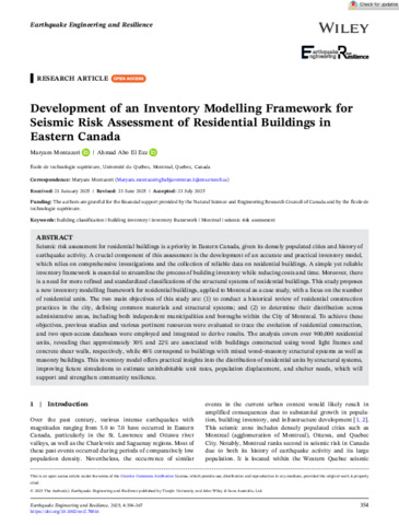 « Development of an inventory modelling framework for seismic risk assessment of residential buildings in eastern Canada ».