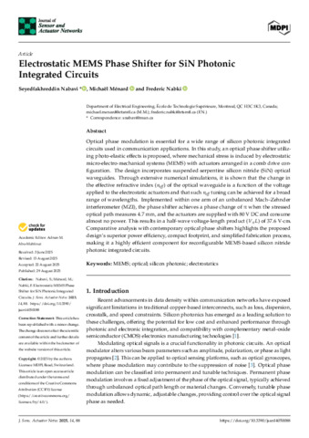 « Electrostatic MEMS phase shifter for SiN photonic integrated circuits ».