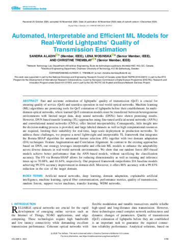 « Automated, interpretable and efficient ML models for real-world lightpaths’ quality of transmission estimation ».
