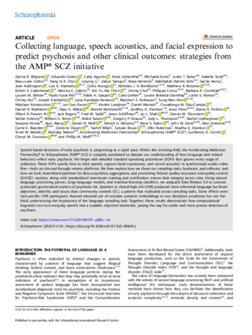 « Collecting language, speech acoustics, and facial expression to predict psychosis and other clinical outcomes: strategies from the AMP® SCZ initiative ».