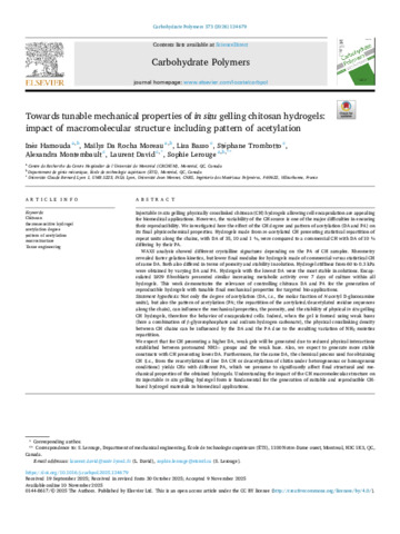 « Towards tunable mechanical properties of in situ gelling chitosan hydrogels: Impact of macromolecular structure including pattern of acetylation ».