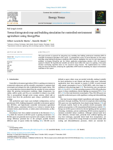 « Toward integrated crop and building simulation for controlled environment agriculture using EnergyPlus ».