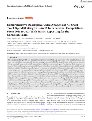 « Comprehensive descriptive video analysis of all short track speed skating falls in 16 international competitions from 2021 to 2023 with injury reporting for the Canadian team ».