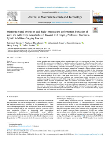 « Microstructural evolution and high-temperature deformation behavior of wire arc additively manufactured Inconel 718 forging Preforms: Toward a hybrid additive–forging process ».