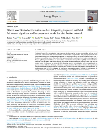 « Bi-level coordinated optimization method integrating improved artificial fish swarm algorithm and hardware cost model for distribution network ».