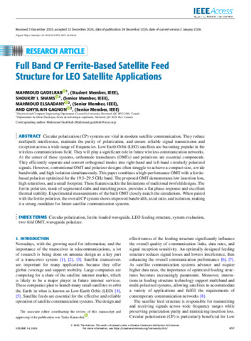 « Full band CP ferrite-based satellite feed structure for LEO satellite applications ».