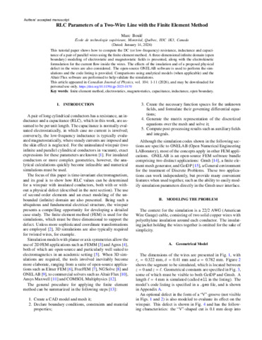 This tutorial paper shows how to compute the DC (or low-frequency) resistance, inductance, and capacitance of a pair of parallel wires using the finite element method. A three-dimensional infinite domain (open boundary) modeling of electrostatic and magnetostatic fields is presented, along with the electrokinetic formulation for the current flow inside the wires. The effects of the insulation and of a proposed physical defect in the wires are also considered. The open-source ONELAB software is used to perform the simulations and the code listing is provided. Comparisons using analytical models (when applicable) and the Altair Flux software are performed to help validate the simulations