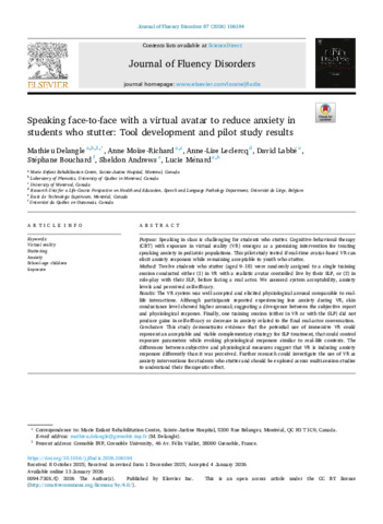 « Speaking face-to-face with a virtual avatar to reduce anxiety in students who stutter: Tool development and pilot study results ».