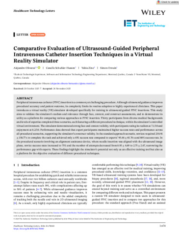 « Comparative evaluation of ultrasound-guided peripheral intravenous catheter insertion techniques in a virtual reality simulator ».