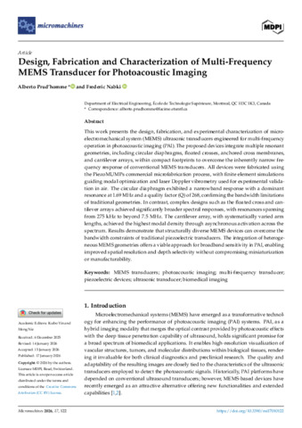 « Design, fabrication and characterization of multi-frequency MEMS transducer for photoacoustic imaging ».