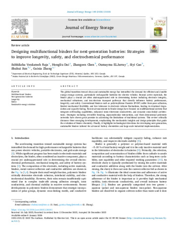 « Designing multifunctional binders for next-generation batteries: Strategies to improve longevity, safety, and electrochemical performance ».