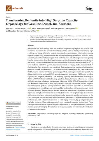 « Transforming bentonite into high sorption capacity organoclays for gasoline, diesel, and kerosene ».