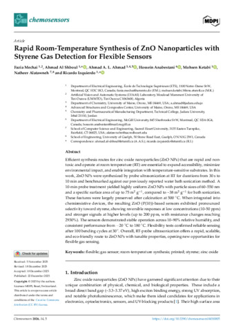 « Rapid room-temperature synthesis of ZnO nanoparticles with styrene gas detection for flexible sensors ».