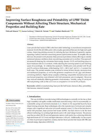 « Improving surface roughness and printability of LPBF Ti6246 components without affecting their structure, mechanical properties and building rate ».