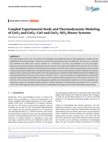 « Coupled experimental study and thermodynamic modeling of GeO2 and GeO2–CaO and GeO2–SiO2 binary systems ».