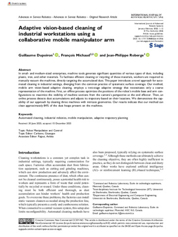 « Adaptive vision-based cleaning of industrial workstations using a collaborative mobile manipulator arm ».