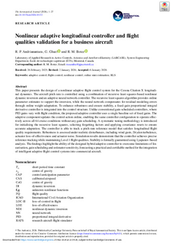 « Nonlinear adaptive longitudinal controller and flight qualities validation for a business aircraft ».