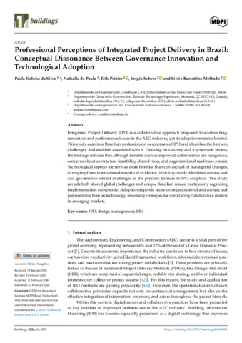 « Professional perceptions of integrated project delivery in Brazil: Conceptual dissonance between governance innovation and technological adoption ».