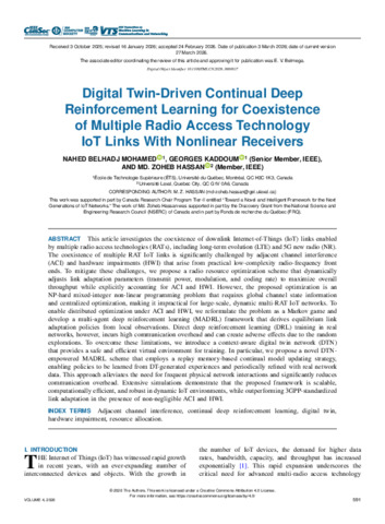 « Digital twin-driven continual deep reinforcement learning for coexistence of multiple radio access technology IoT links with nonlinear receivers ».