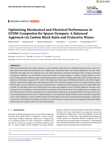 « Optimizing mechanical and electrical performance in EPDM composites for spacer dampers: A balanced approach via carbon black ratio and protective waxes ».